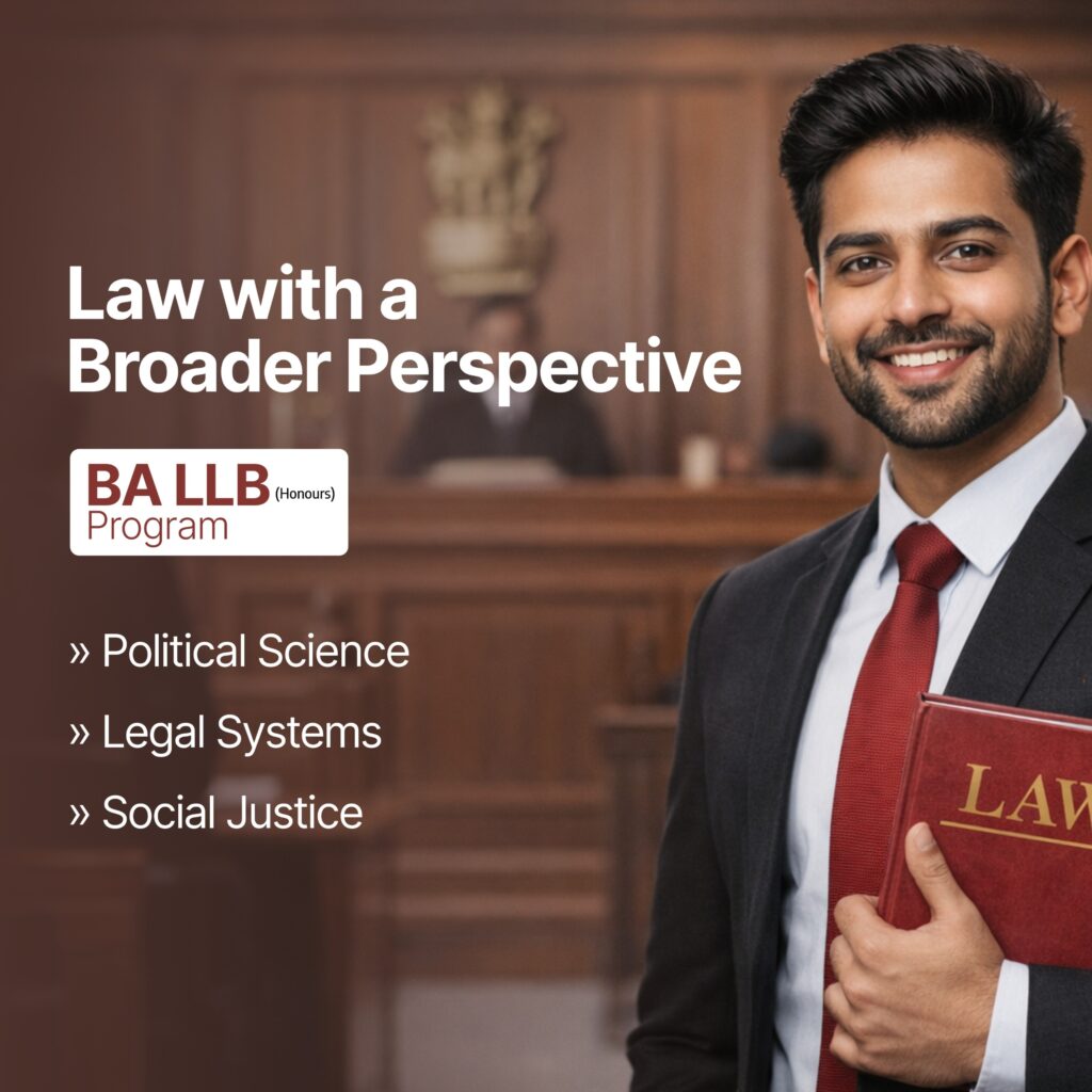 BA LLB (Honours) is a 5-year integrated undergraduate program that combines subjects from arts (such as political science, sociology, and economics) with core legal studies. It helps students understand the social and legal systems together, preparing them for careers in law and public service.